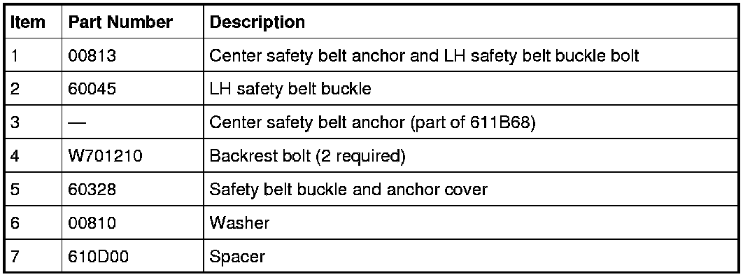 4. For LH seat, remove the center safety belt anchor and LH safety belt buckle.