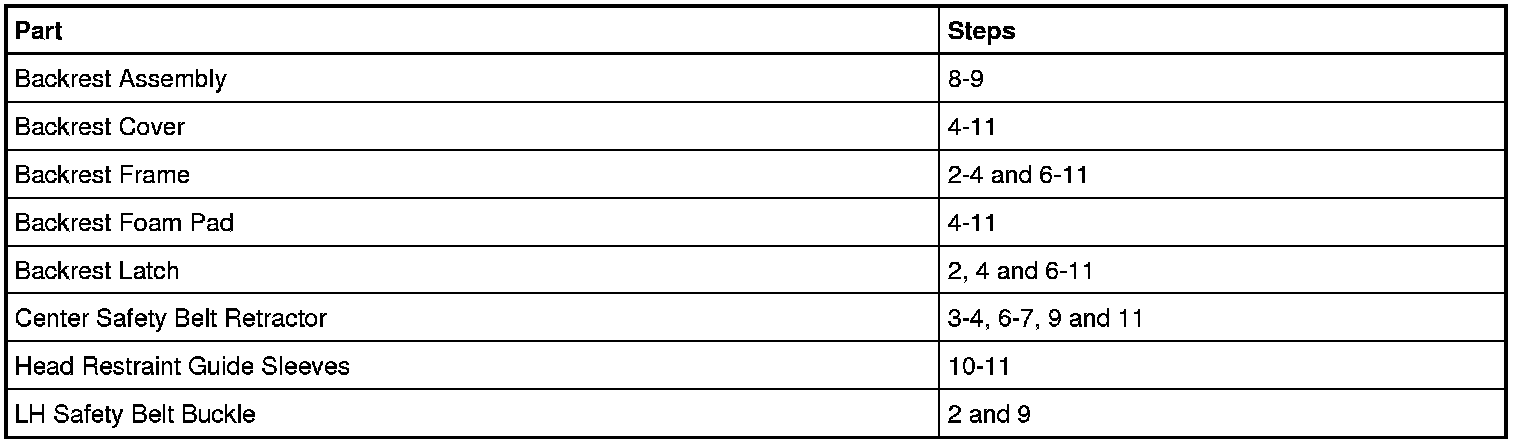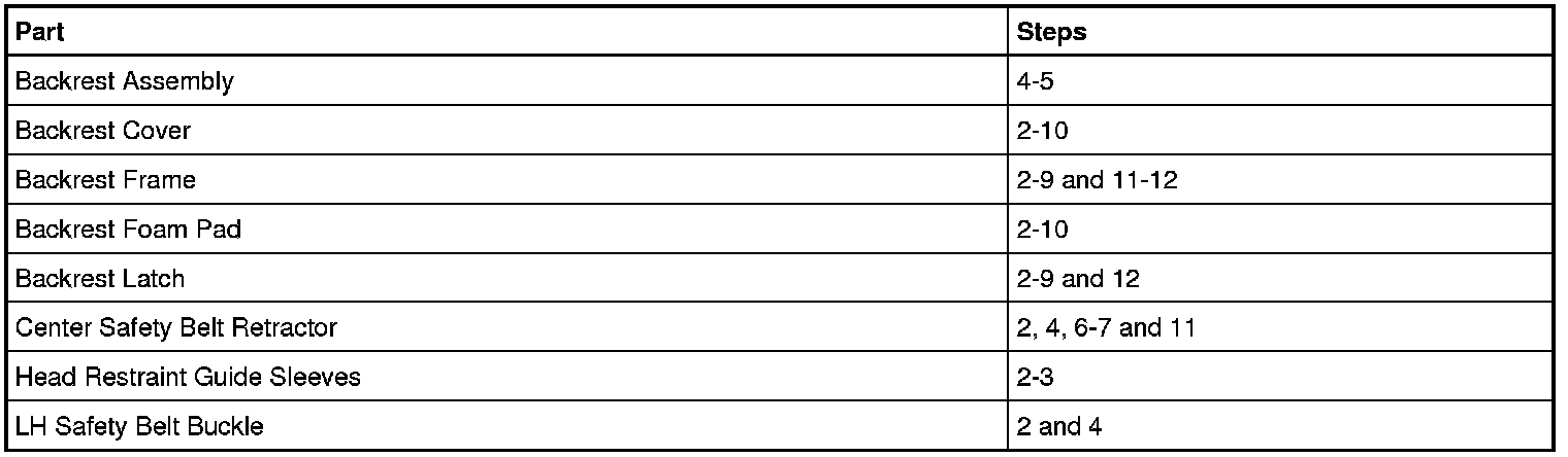 Seat Backrest Components- Removal Steps