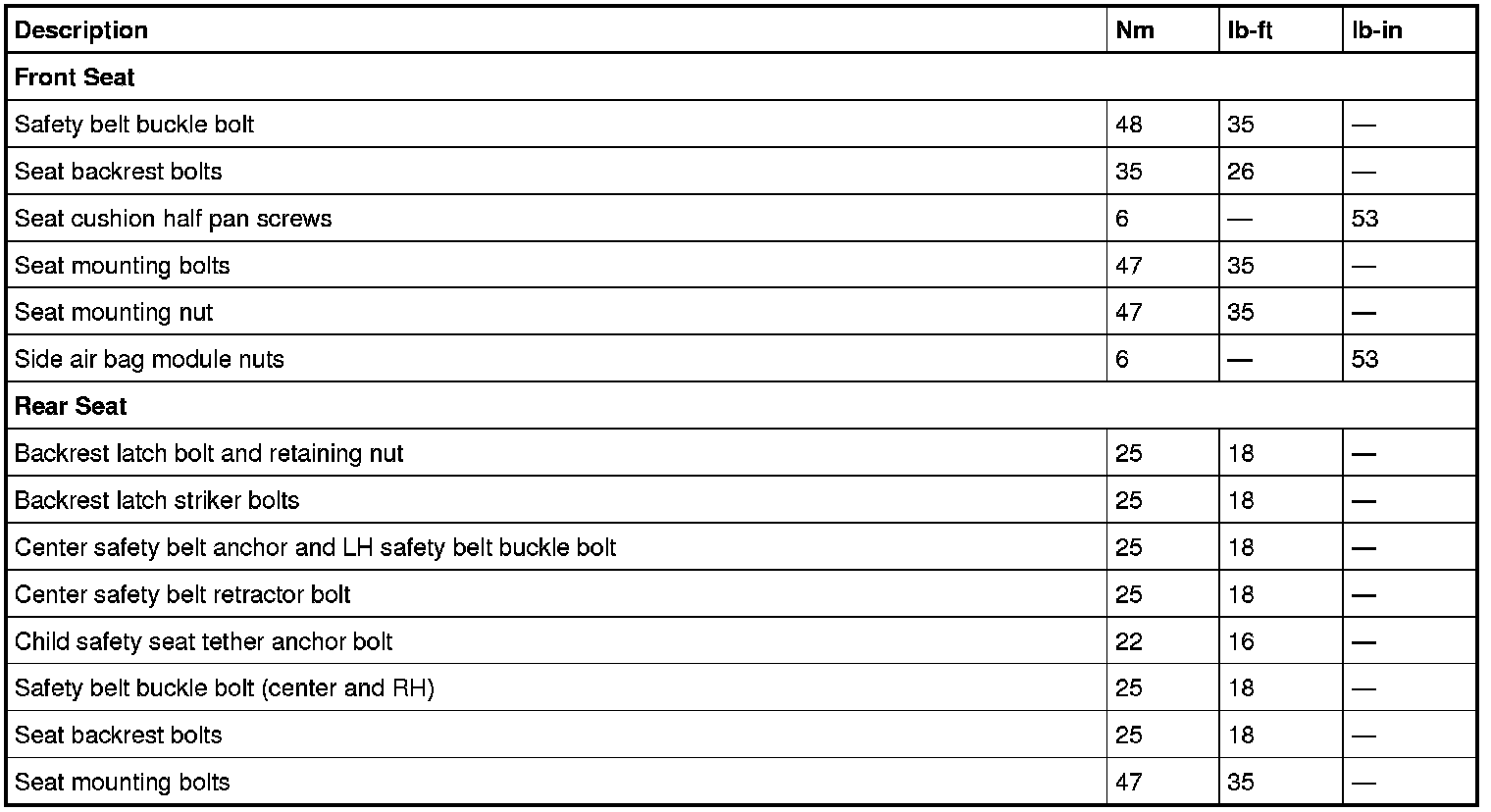 Torque Specifications