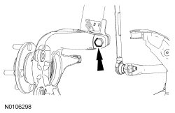 4. NOTICE: The wheel knuckle-to-strut bolt is tightened in 2 stages. Failure to follow these instructions may result in incorrect clamp load and component damage.