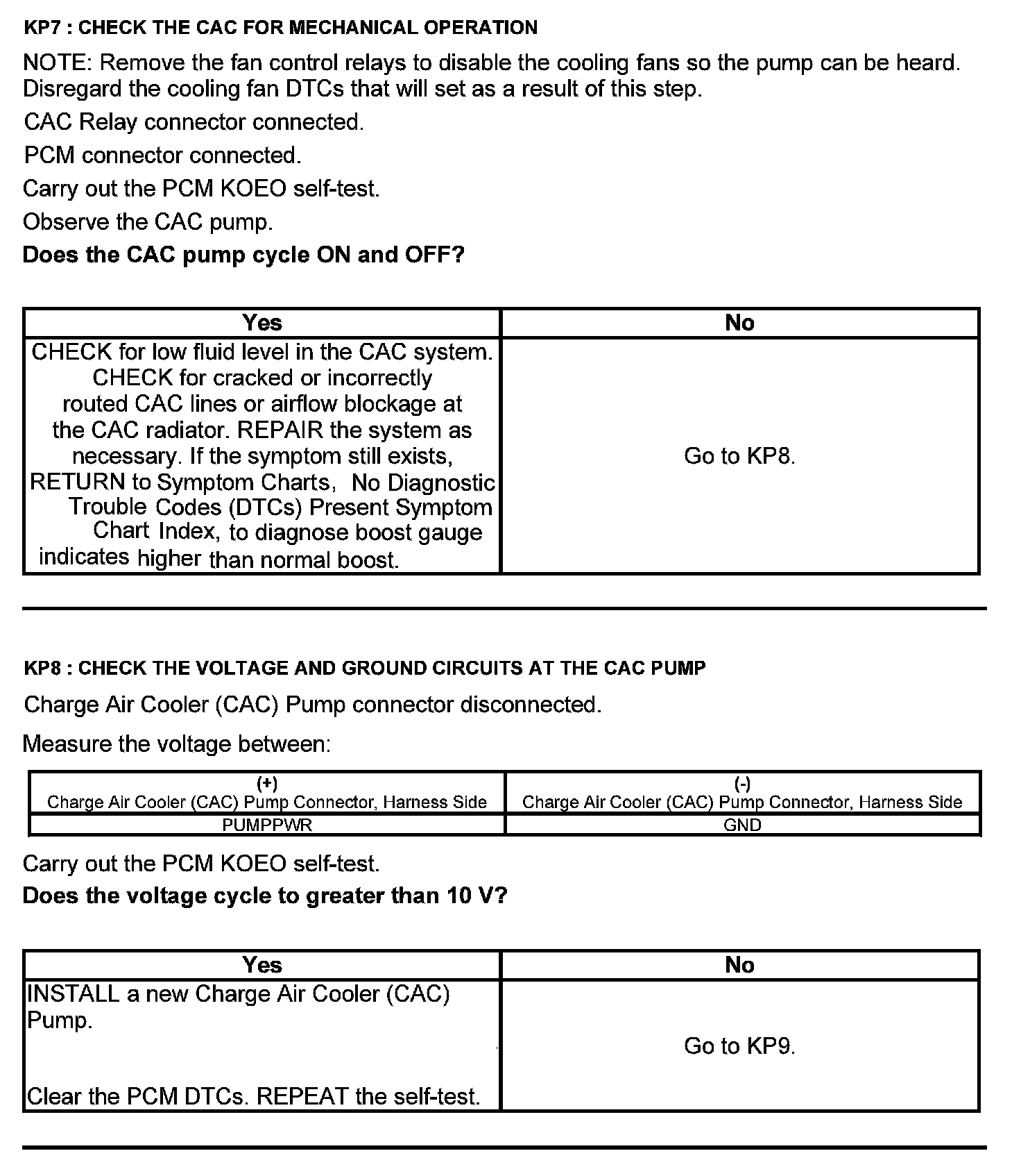 Test KP: Charge Air Cooler (CAC) Pump