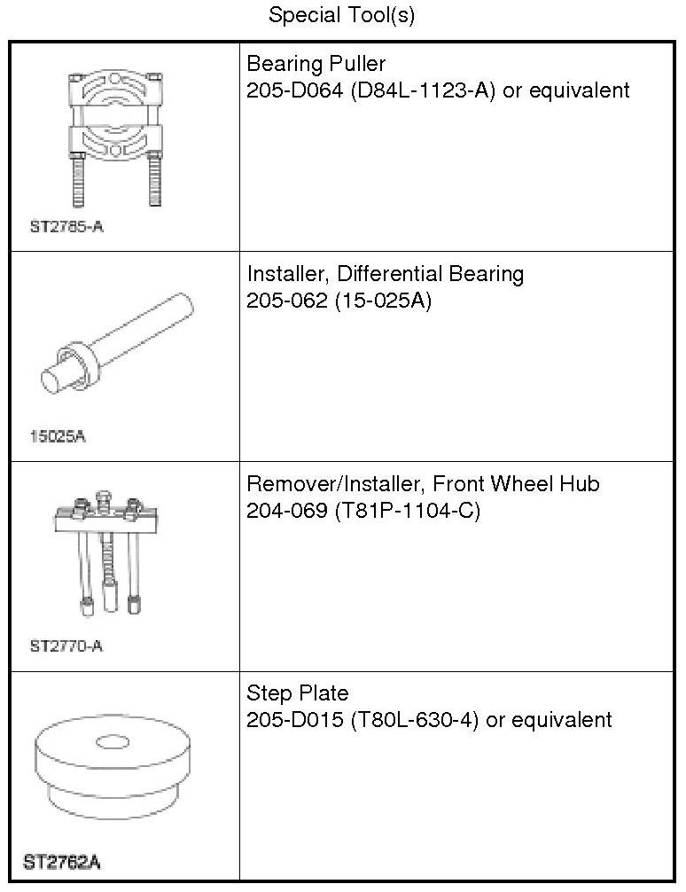 Using the Front Wheel Hub Remover/Installer, Bearing Puller and Step Plate, remove the differential case bearings.