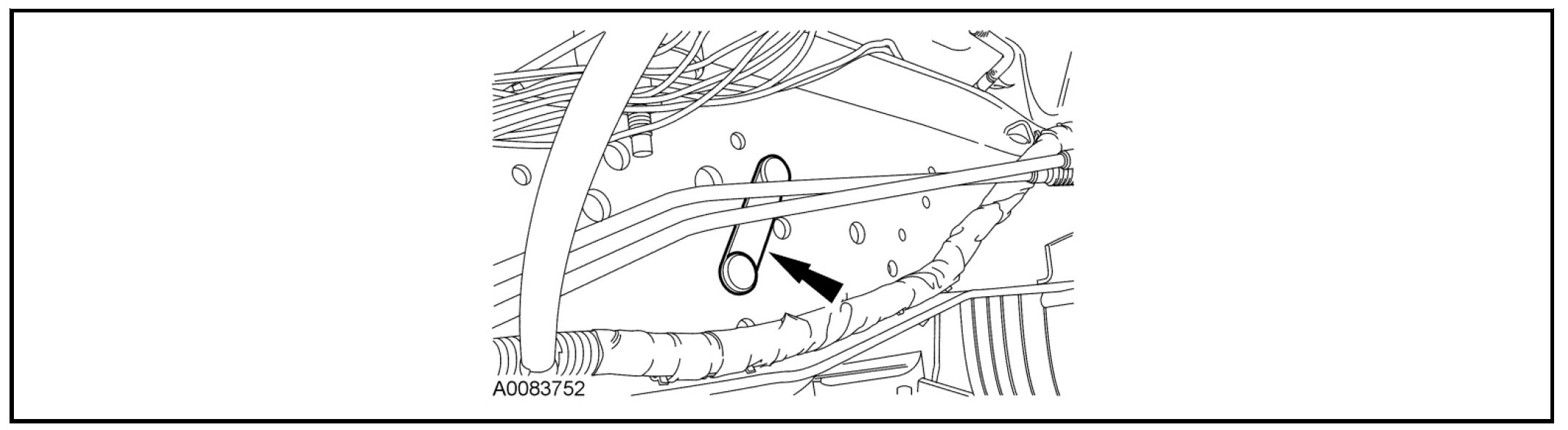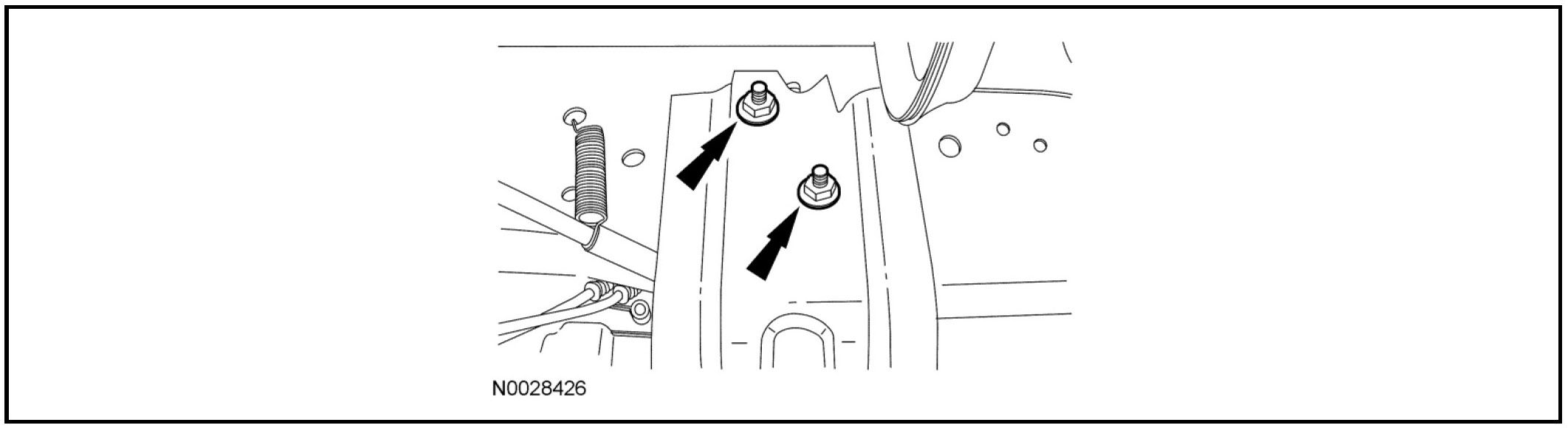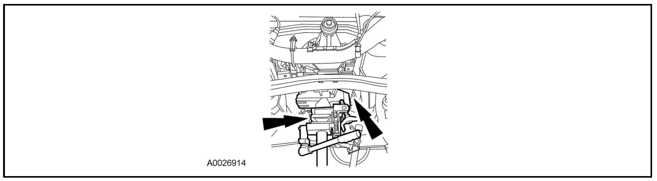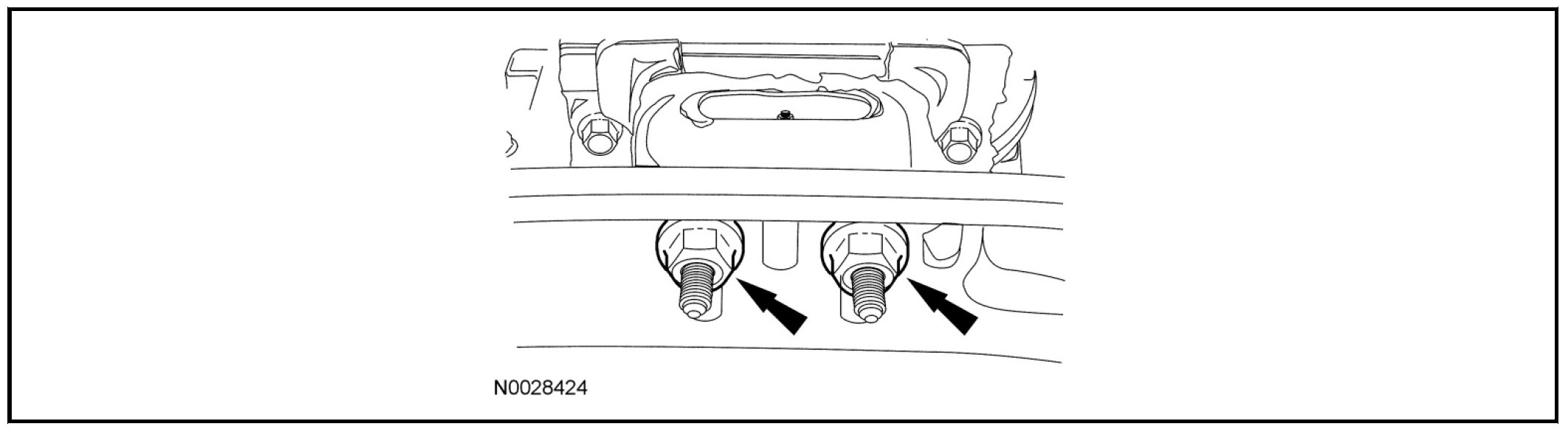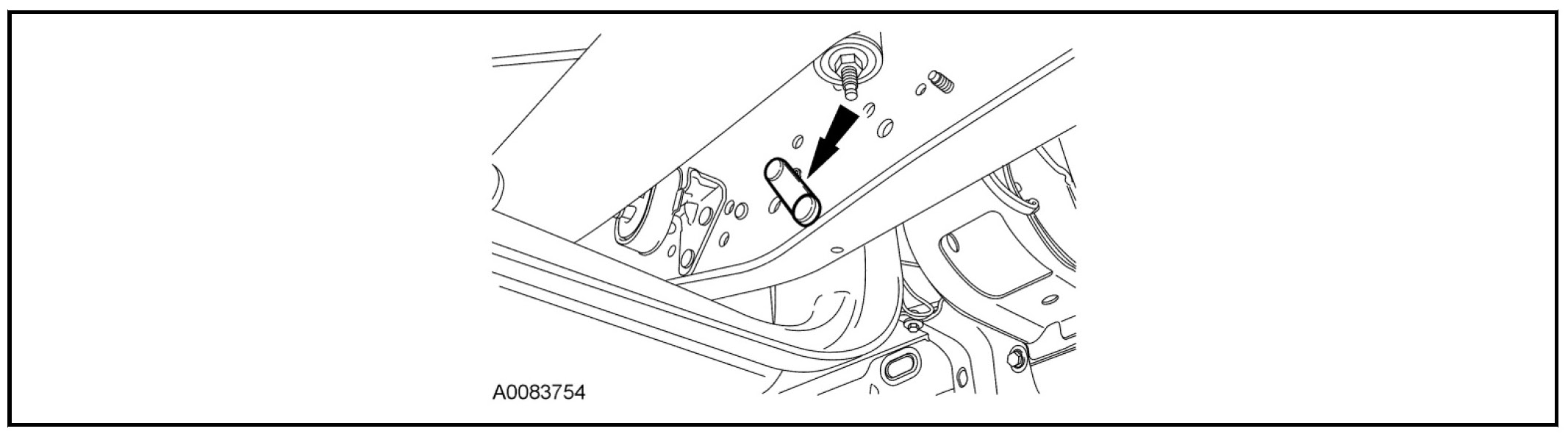 8. Remove the RH crossmember bolt and transmission support crossmember.