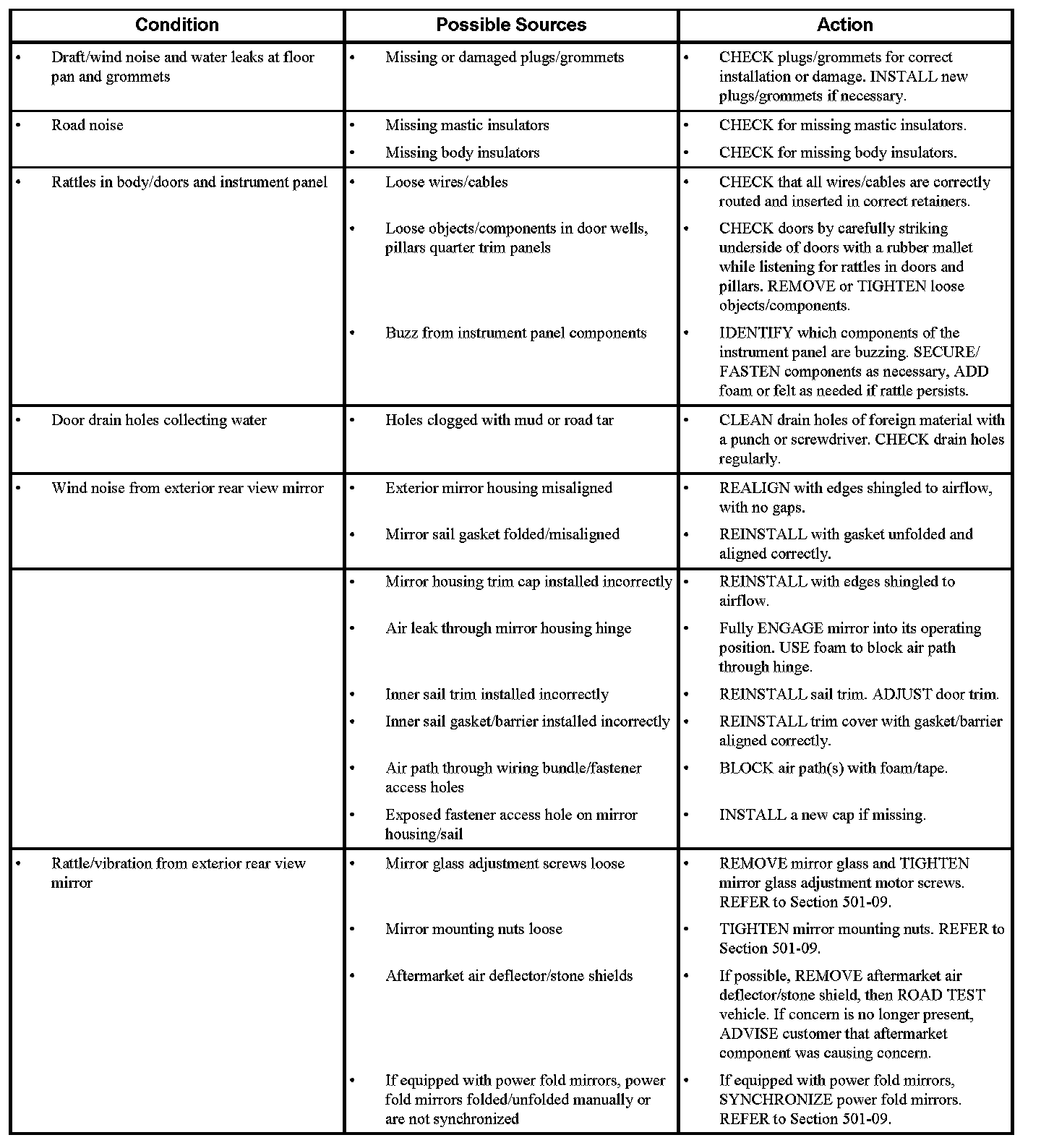 Symptom Chart - NVH