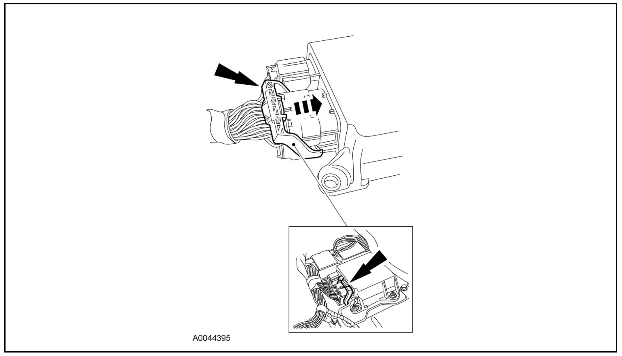 - Using the connector position assurance lever, pivot it toward the RCM, drawing the connector into the RCM.