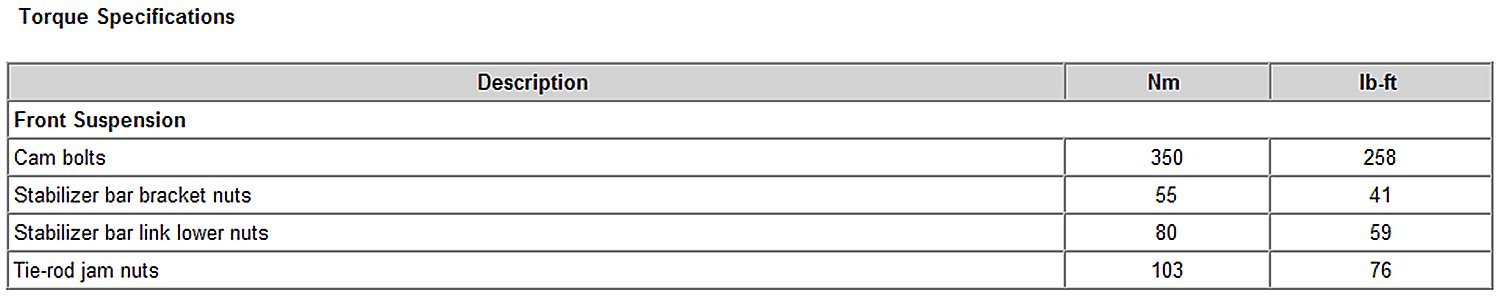 Torque Specifications