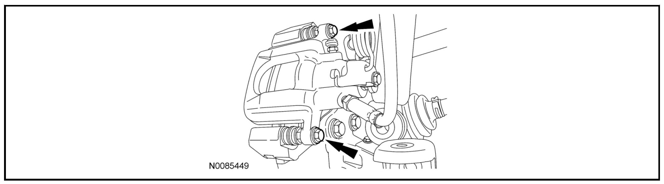 16. Remove the rear brake caliper bolts.