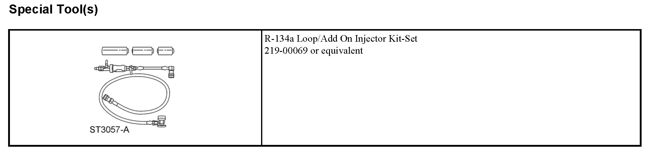 NOTE: If fluorescent leak detection dye is also to be added during A/C charging, the dye may be added to the dye/lubricant injector, from the R-134a Loop/Add On Injector Kit-Set, along with the PAG oil.