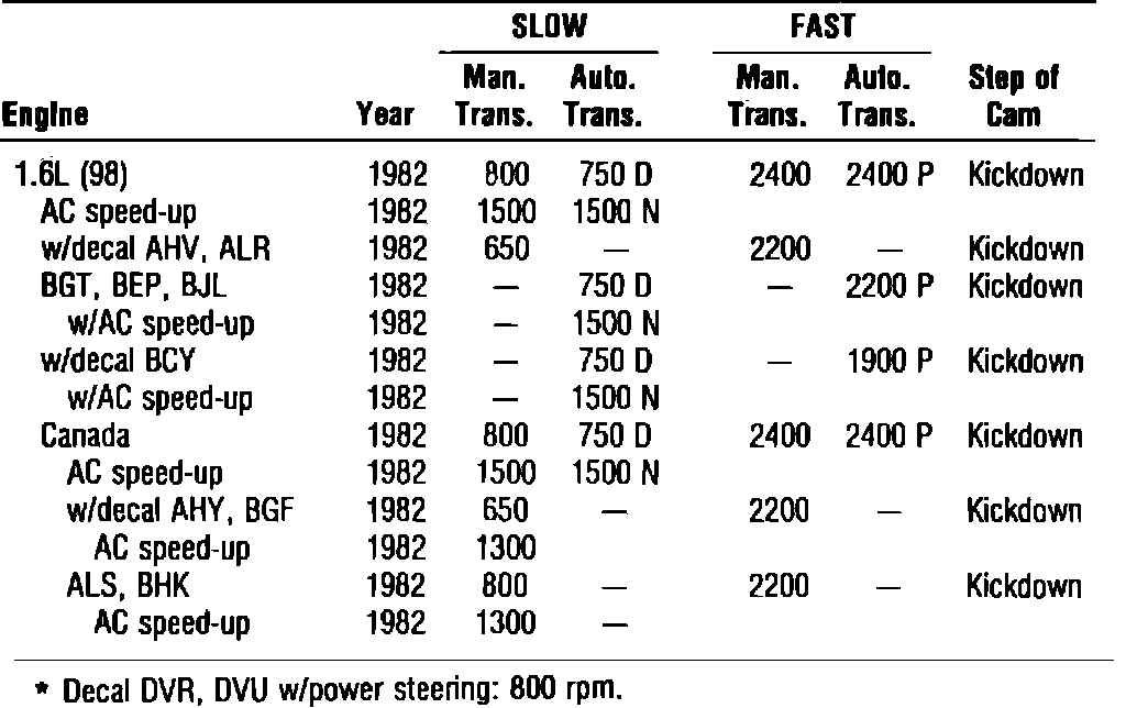 Idle Speed Specifications: