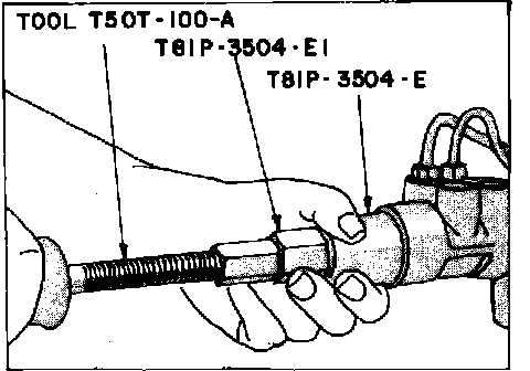 a. Lubricate sleeve tool No. T81P-3504-M1, or equivalent, with automatic transmission fluid type F or equivalent, position tool over valve assembly, Fig. 37A.