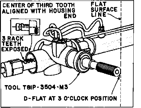 5. Position rack in rack housing with three rack teeth protruding from left side of housing. Carefully observe rack while looking through valve housing bore and center the visible rack tooth in the valve bore.