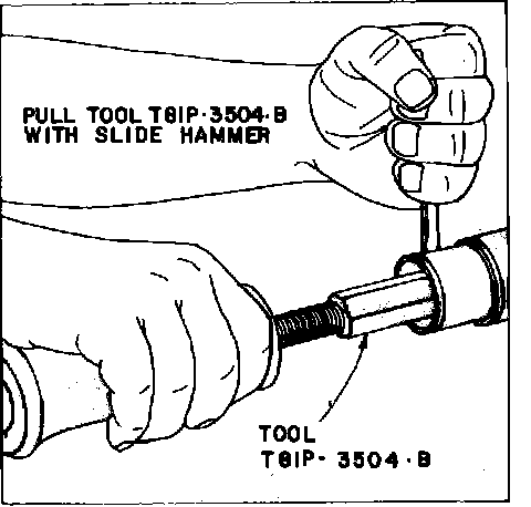 9. Using a slide hammer tool No. T50T-100-A, or equivalent, remove seal then tools, Fig. 35.