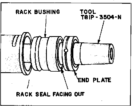 9. Position rack bushing with seal and nylon ring facing out on protective sleeve, Fig. 50. Slide the rack bushing over the sleeve into housing bore, place end plate against the rack bushing with drive slots facing out. Remove protective sleeve.