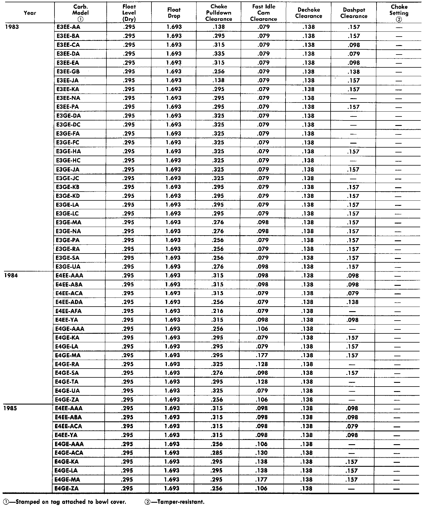 Escort L4-098 1.6L VIN 2 2-bbl