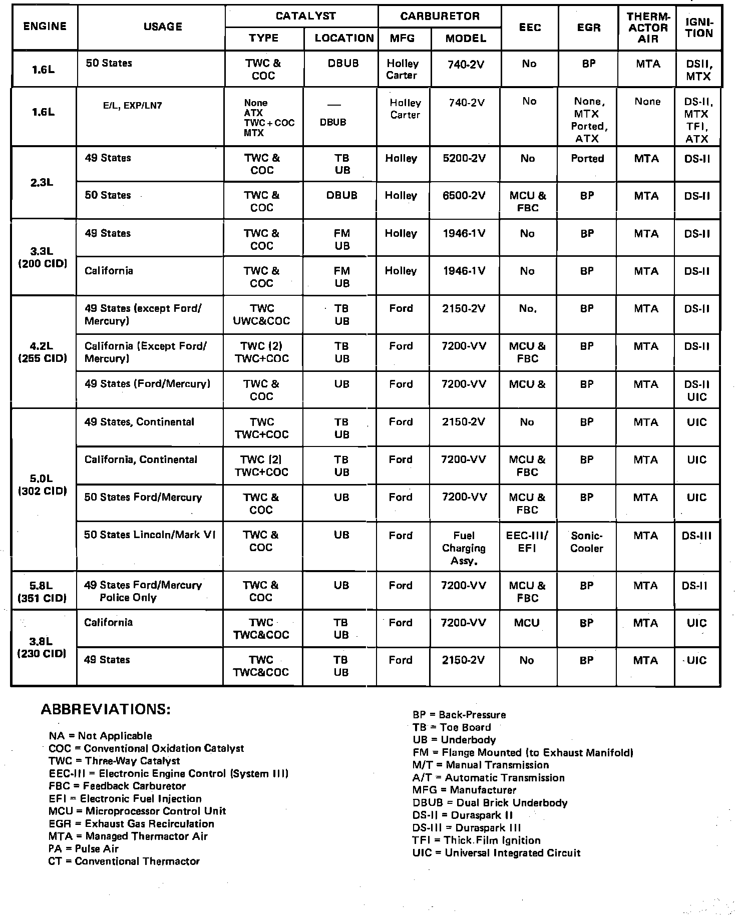 Fairmont V8-255 4.2L VIN D 2-bbl