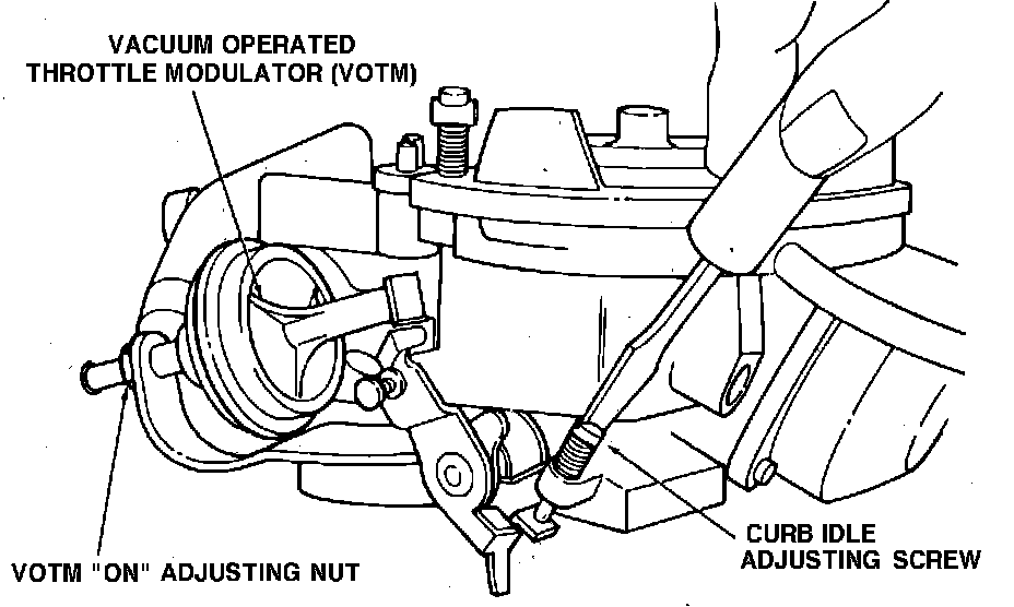Fig. 1 Curb Idle Speed Adjust. V8-255 engine W/7200 carb.: