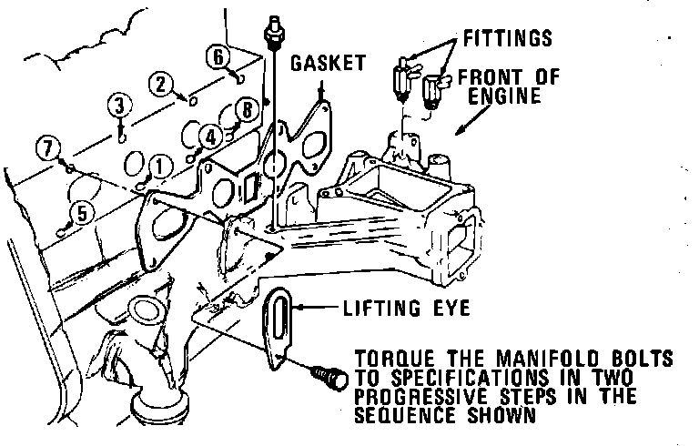 3. Torque intake manifold attaching bolts in sequence, as shown in figure, in two steps: