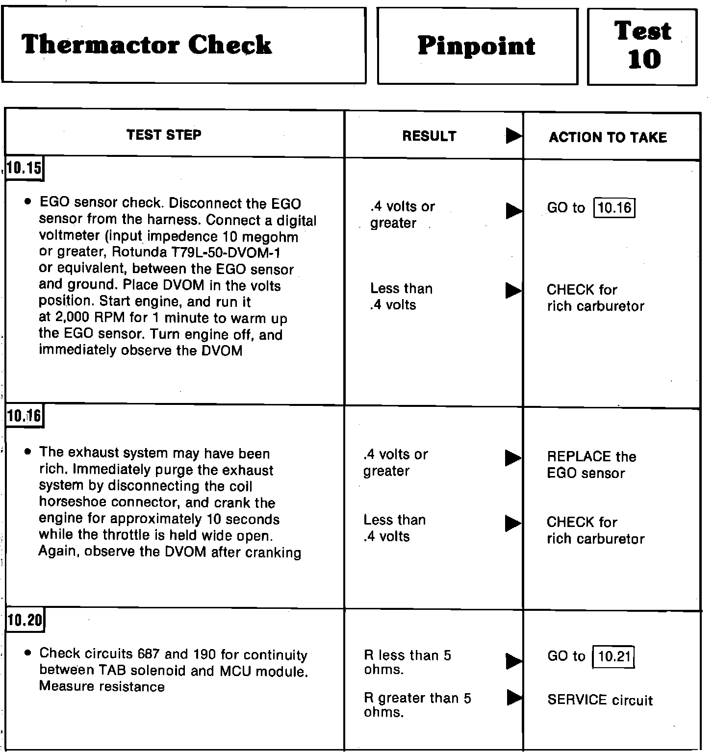 10.0 Thermactor Check, Service Code 4-4