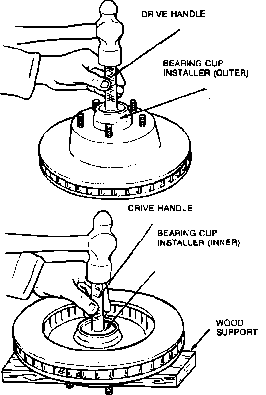 4. Remove hub and disc assembly. Grease retainer and inner bearing can now be removed.