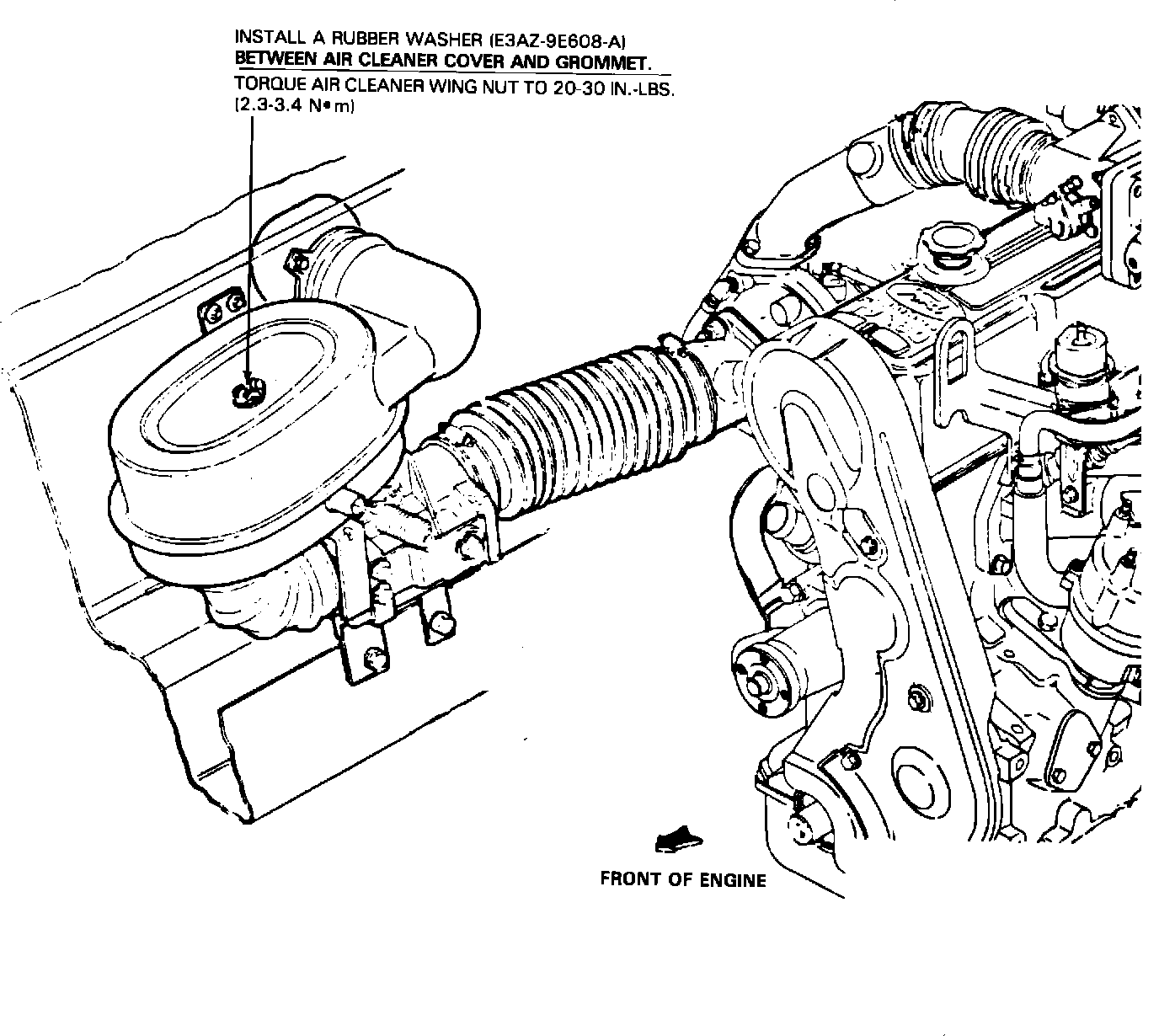 3. Install a rubber washer (E3AZ-9E608-A) between the air cleaner cover and grommet (Figure 8).