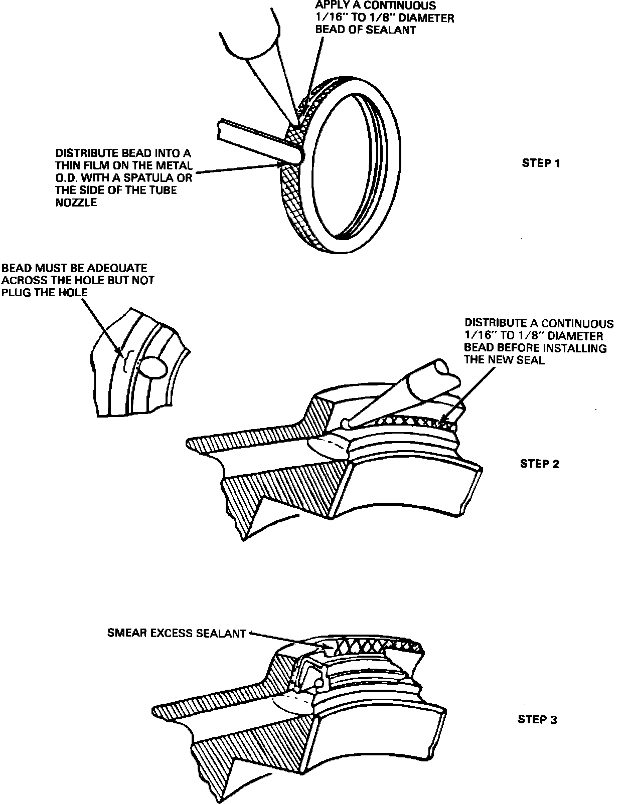 NOTE: The bead must be adequate across the drainback hole but not plug the hole. If the hole is blocked, drainback behind the seal will not be provided and leakage could still occur.