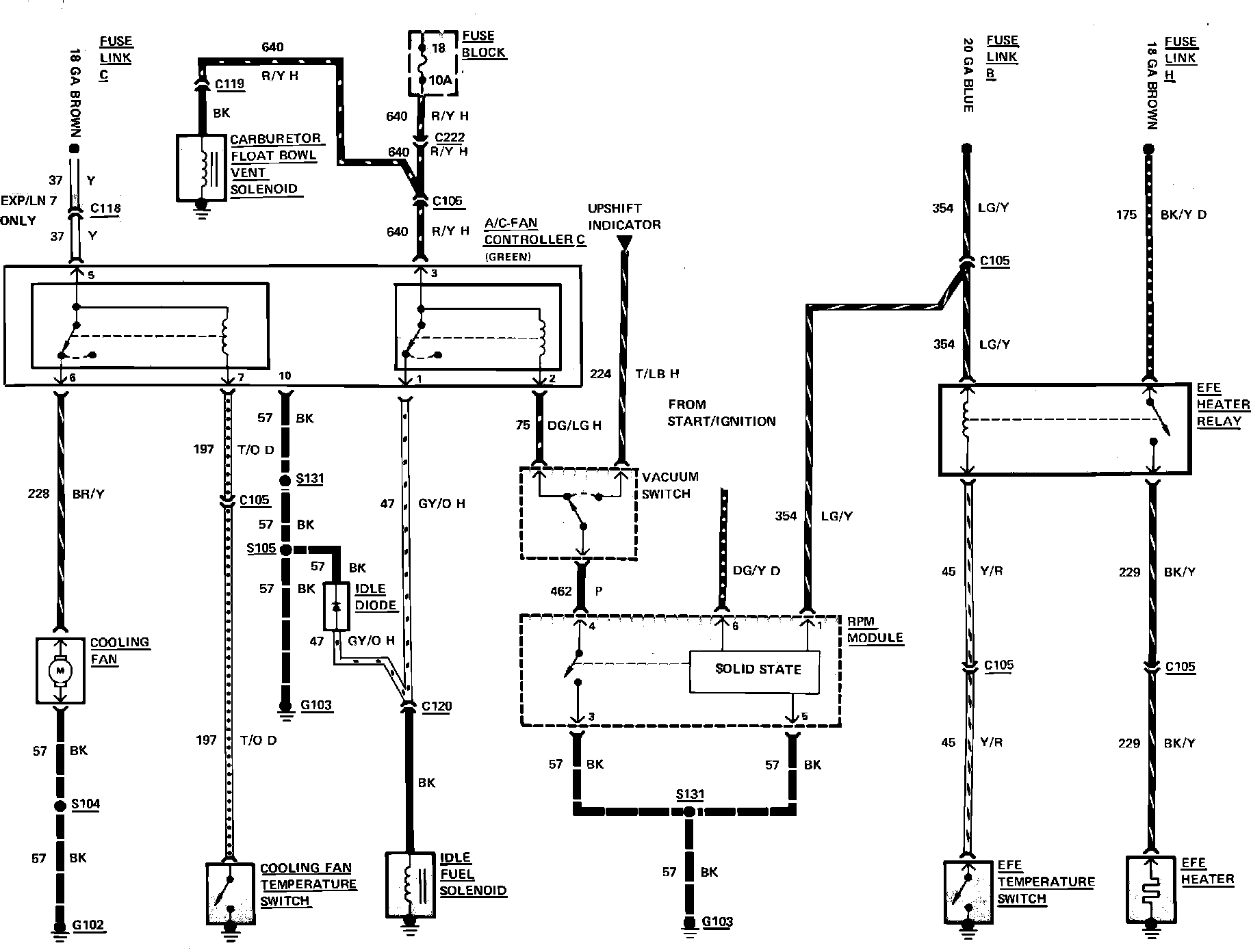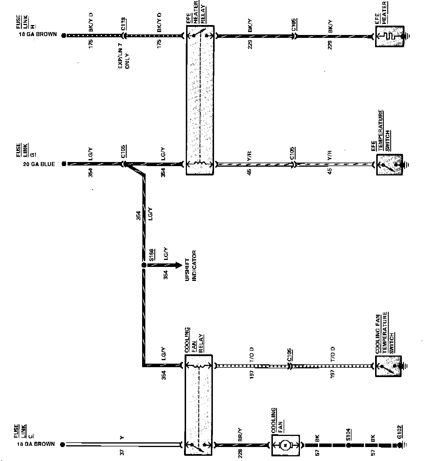 Fig. 26 Cooling fan & early fuel evaporation wiring circuit. 1983 Escort, EXP, Lynx & LN7 with manual transaxle less air cond with fuel economy package: