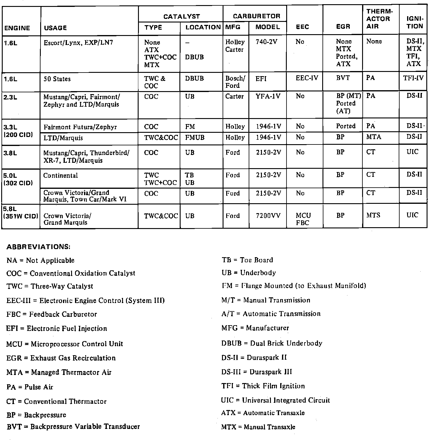EXP L4-098 1.6L VIN 4 2-bbl HP