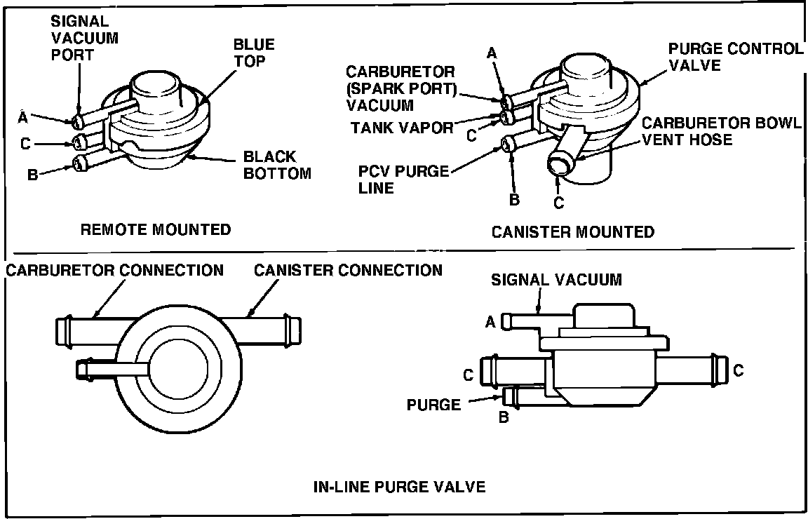 2. With valve temperature at or above 120° F, apply vacuum to vacuum signal nipple and ensure that air does not flow between carburetor port and canister port.