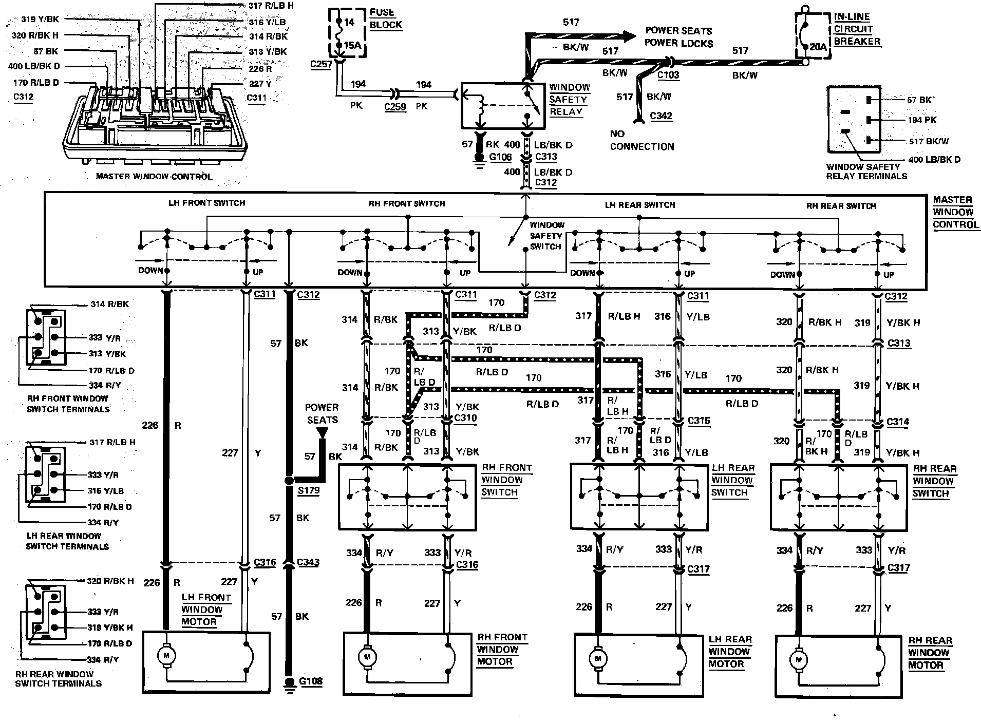 Fig. 64 Power Window Wiring Circuit. 1983 LTD & Marquis: