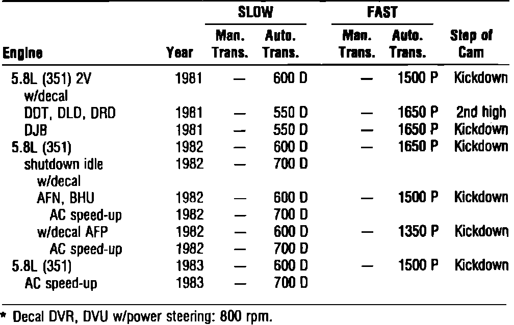 Idle Speed Specifications: