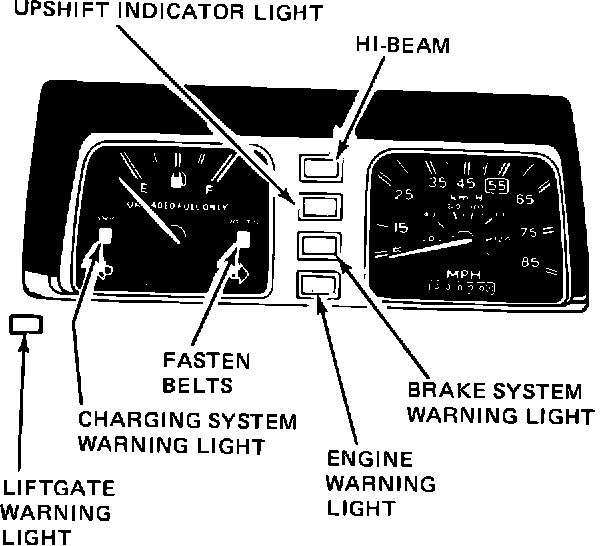 A number of inquiries, have been received from customers and Dealer Service personnel concerning the omission of a transmission "Shift Indicator Light" on some 1983 vehicles equipped with manual transmissions. Contrary to published 1983 Owners Guides (Figure 7), some vehicles are not equipped with a functioning transmission shift indicator light. Vehicles which are supposed to have a functioning light are determined by the calibration of the engine installed in the vehicle. In the other cases, the light will be installed in the instrument panel, but not connected. Again, this has been done purposely.