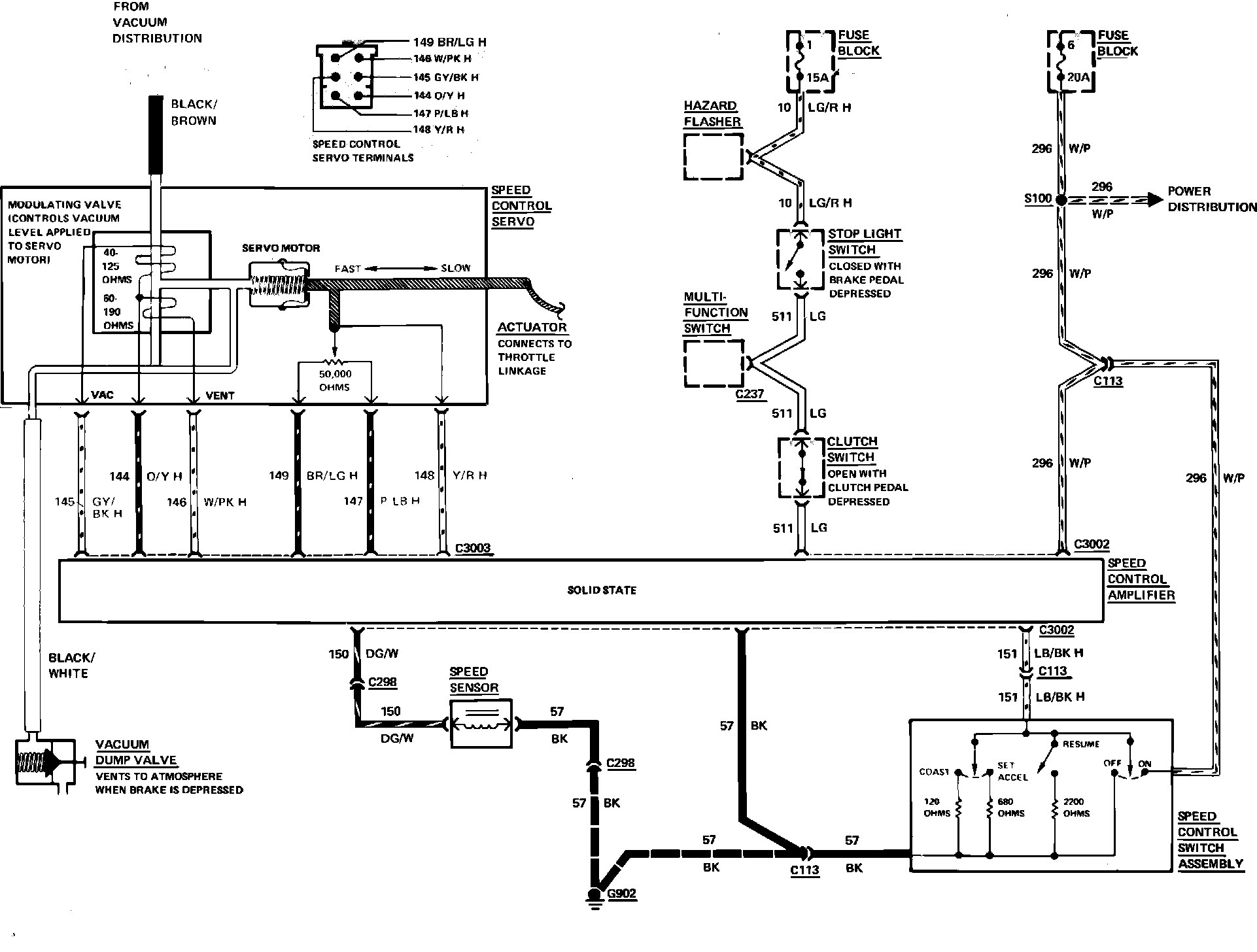 Fig. 4 Speed control wiring schematic (typical). 1982---85 Ford & Mercury, 1982---83 Continental Mark VI & 1982---87 Lincoln Town Car: