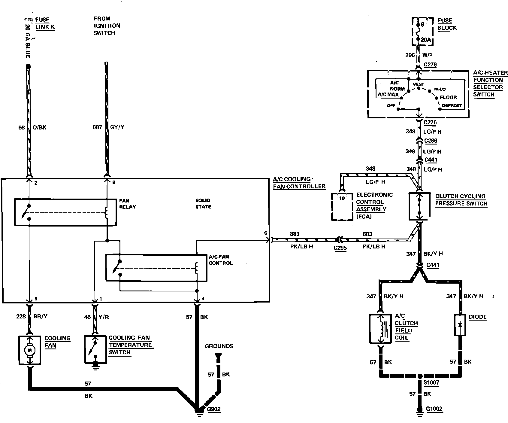 Fig. 7 Air Conditioning Compressor Clutch & Cooling Fan Wiring Circuit. 1983 Cougar & Thunderbird with 4 Cyl Turbocharged Engine: