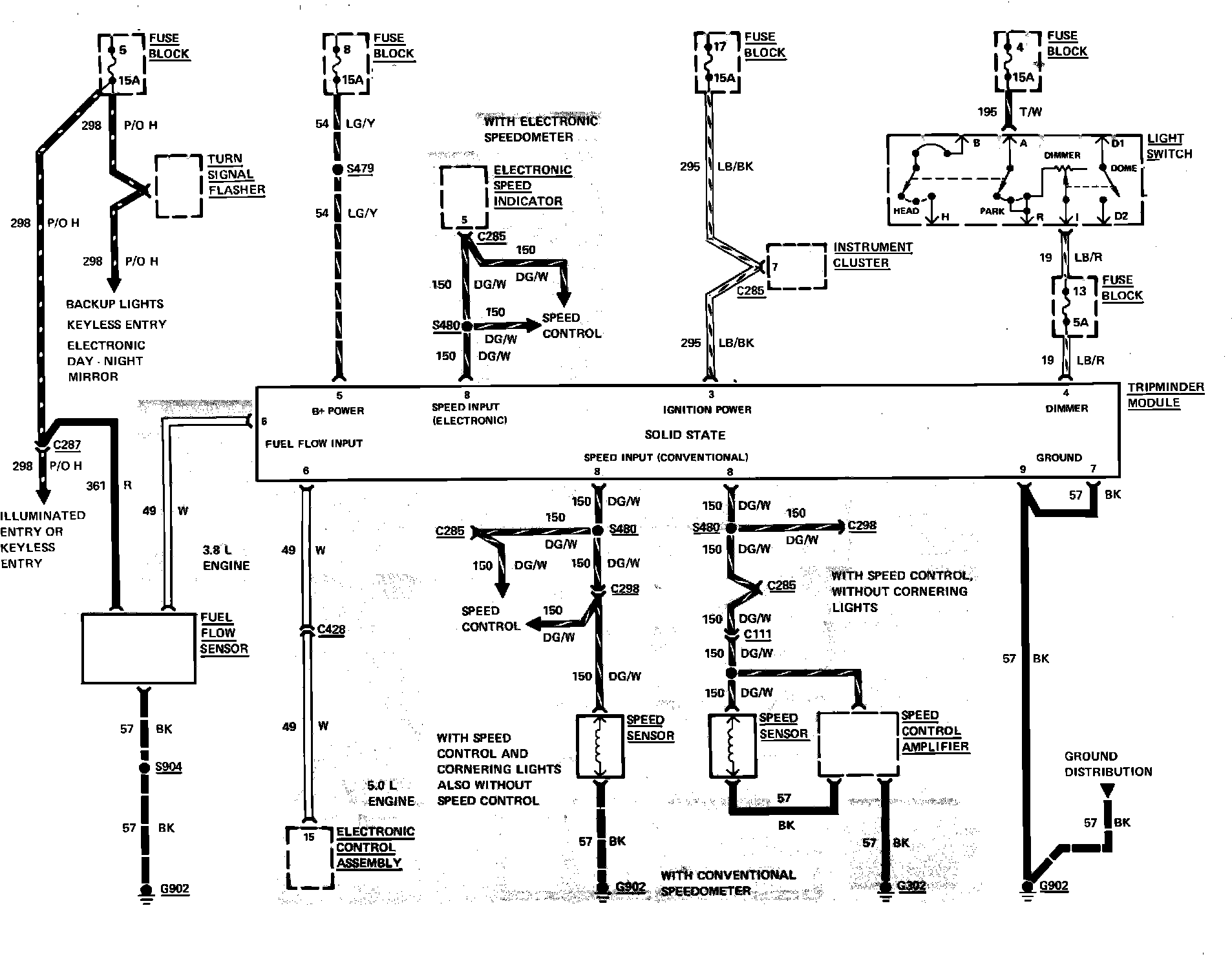 Fig. 95 Tripminder Wiring Circuit. 1983 Cougar & Thunderbird:
