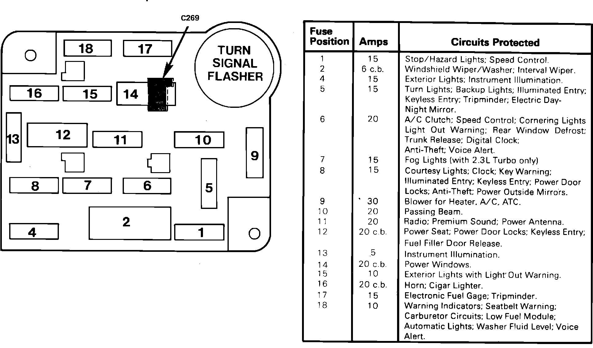 Fig. 1 Fuse Panel. 1983 Cougar & Thunderbird: