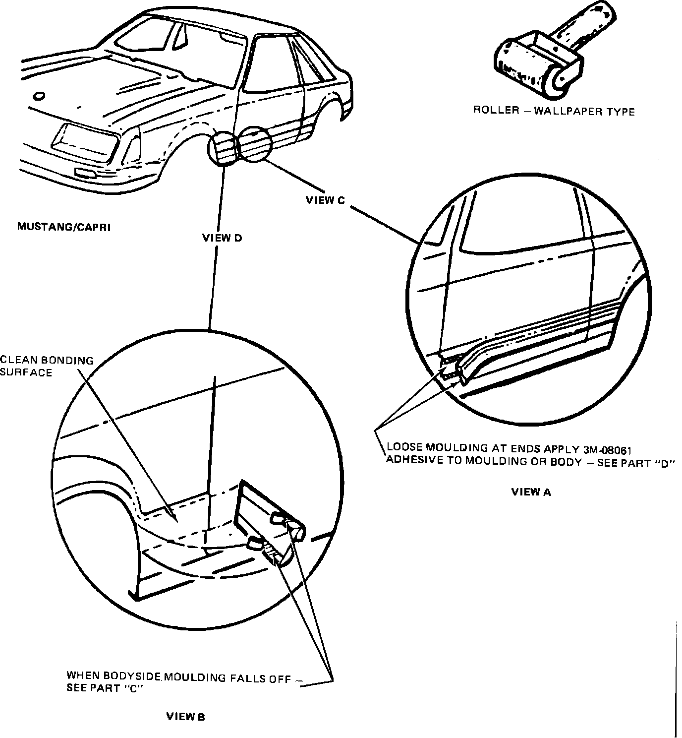Service procedure for bodyside mouldings which become partially loose at the ends (Figure 1, View A).