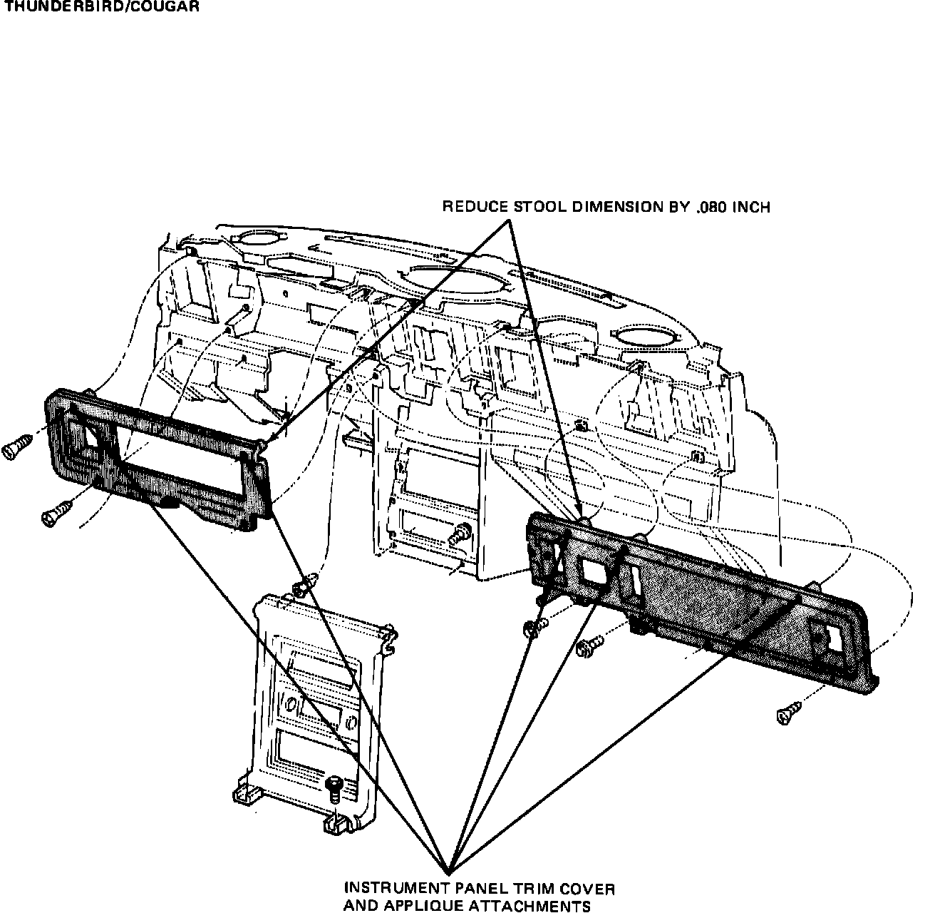 12. Measure and layout stools on instrument panel trim cover and R.H. applique. See Figure 4 (stools to be reduced .080 inch from the back side).