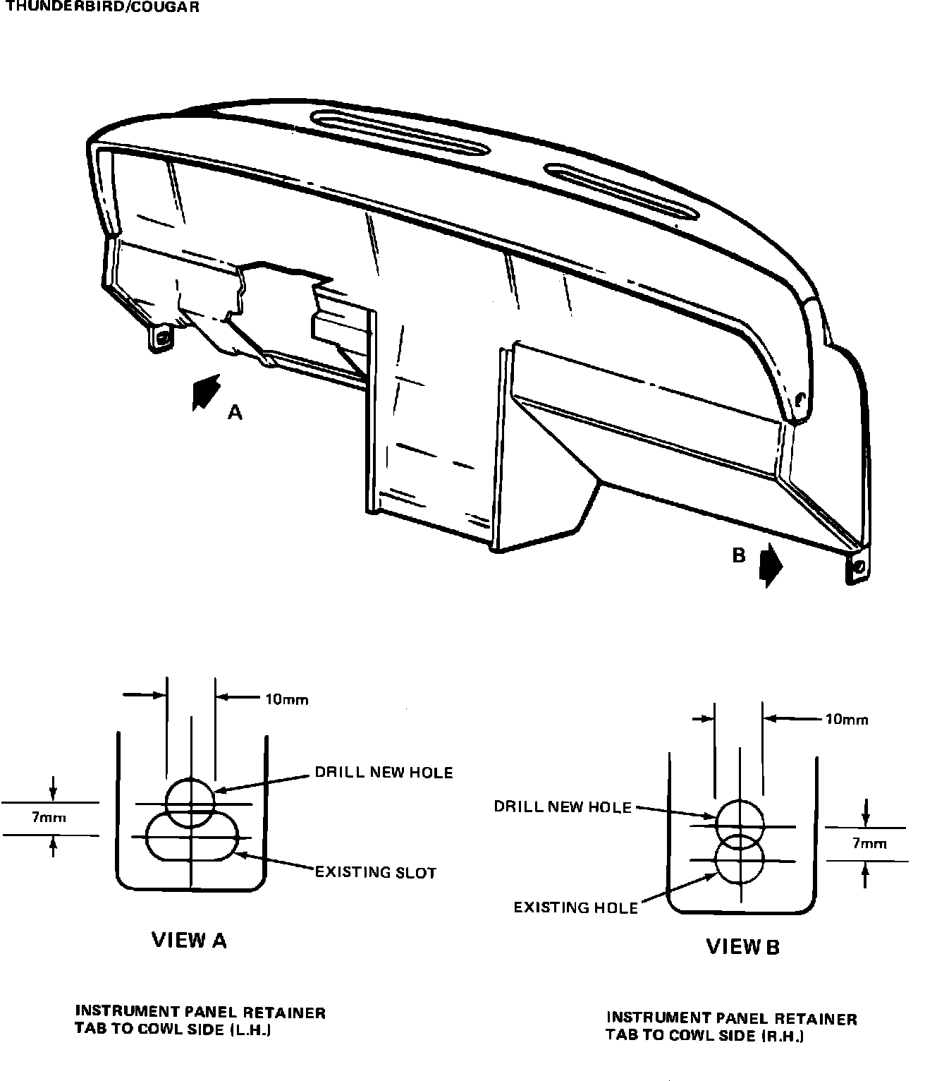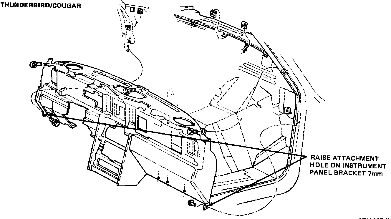 6. Relocate attachment holes in instrument panel brackets 7 mm higher on the bracket - center line of existing hole to center line of new hole.