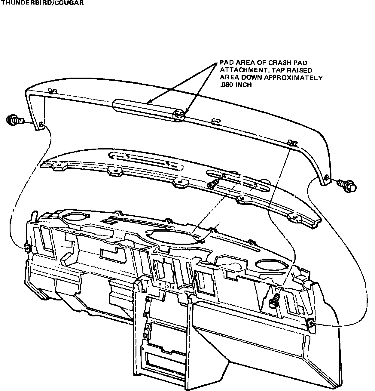 NOTE: For units built before May 20, 1983, a void or non-uniform contour of character line that covers the instrument panel trim appliques will accentuate the gapping concern. If the crash pad exhibits either of these symptoms, the crash pad will have to be replaced.