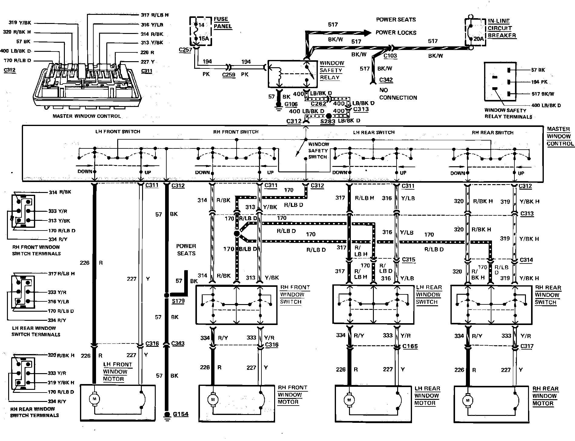 Fig. 65 Power Window Wiring Circuit. 1984 LTD & Marquis: