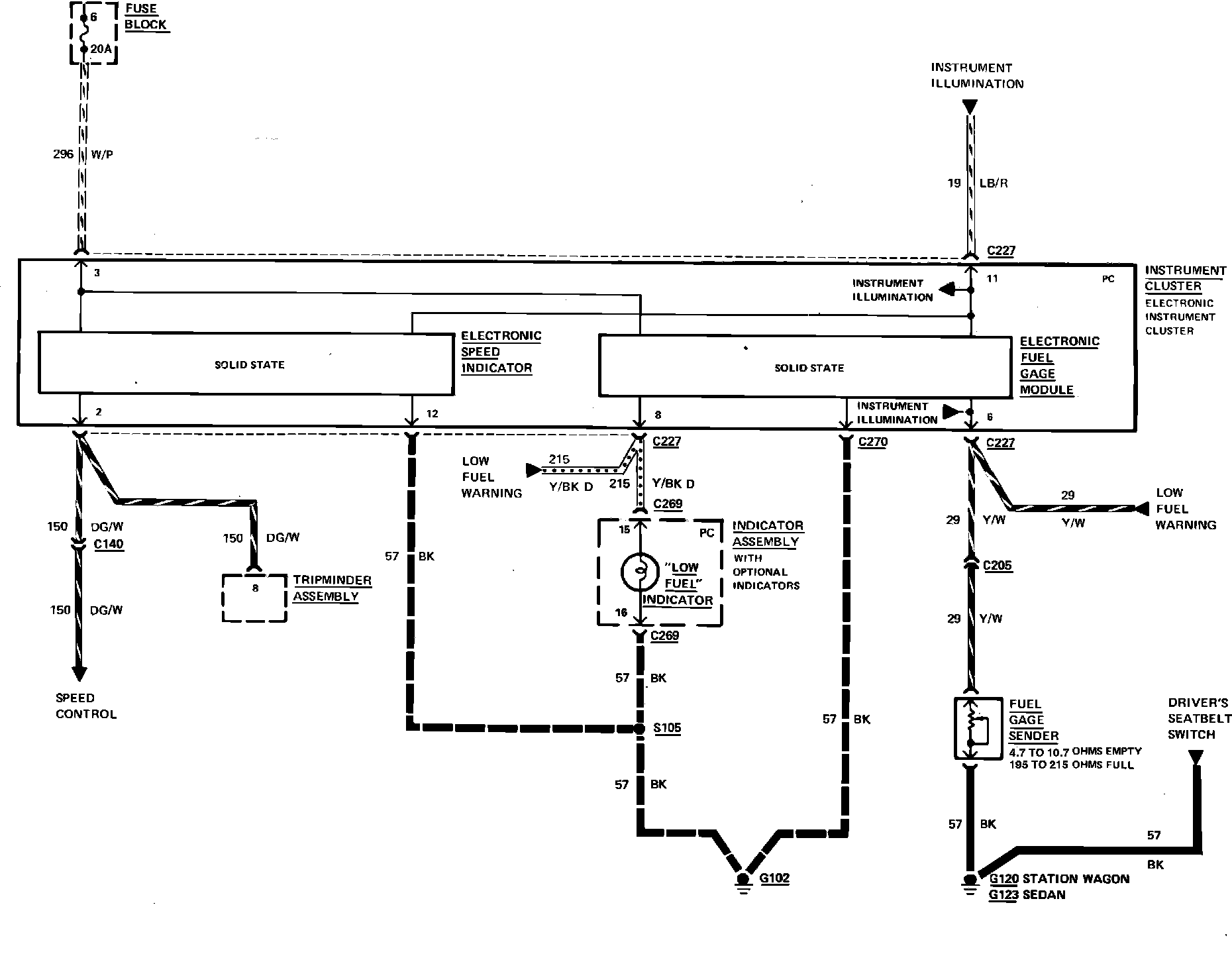 Fig. 31 Electronic Fuel Gauge & Speed Indicator Wiring Circuit. 1983-84 LTD & Marquis: