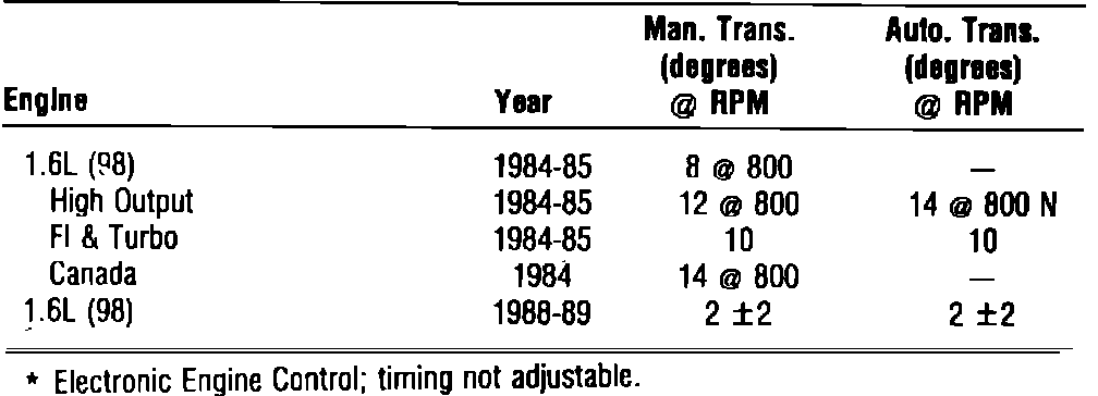 Escort L4-98 1.6L SOHC VIN 4 2-bbl HP