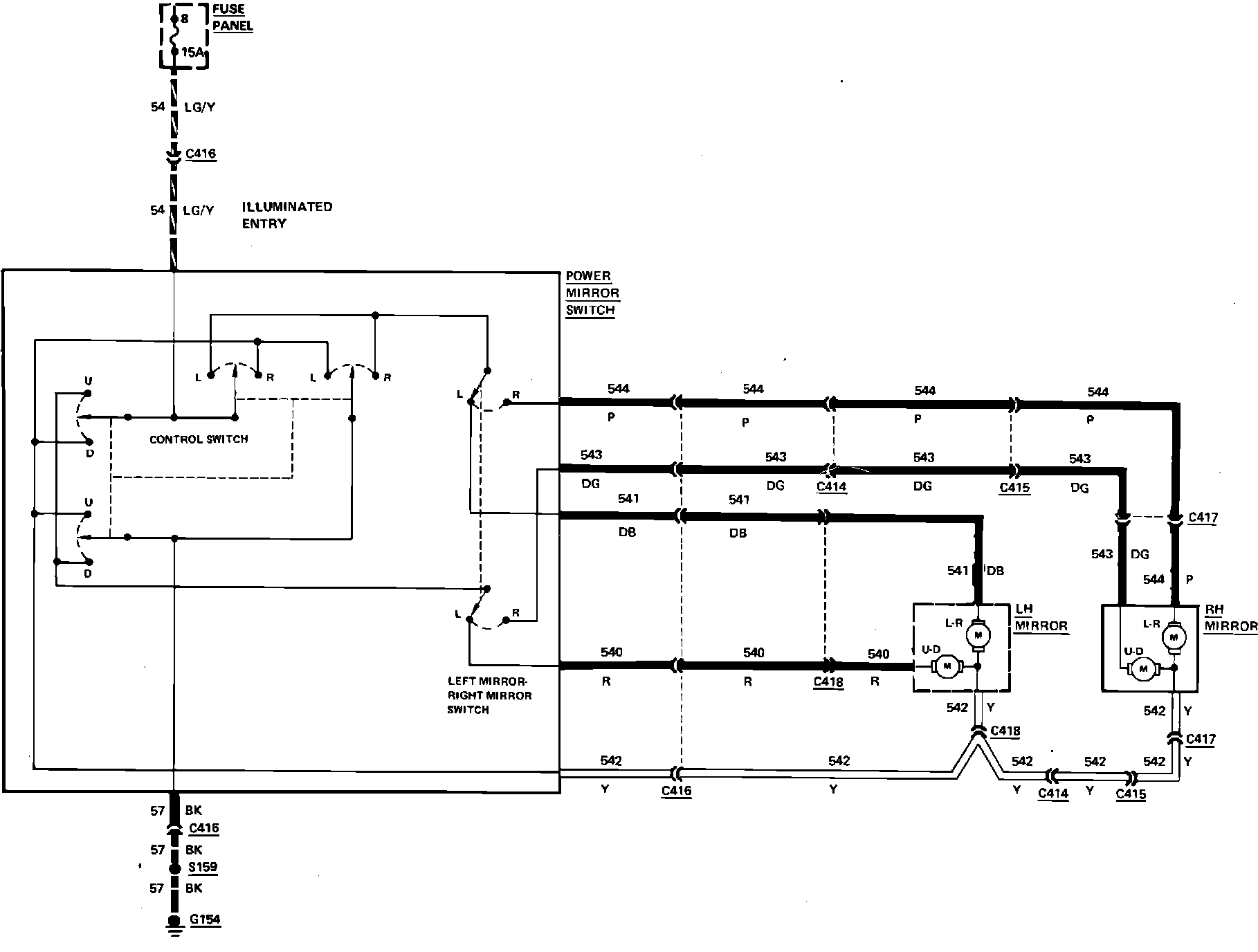 Fig. 47 Power Outside Mirrors Wiring Circuit. 1985: