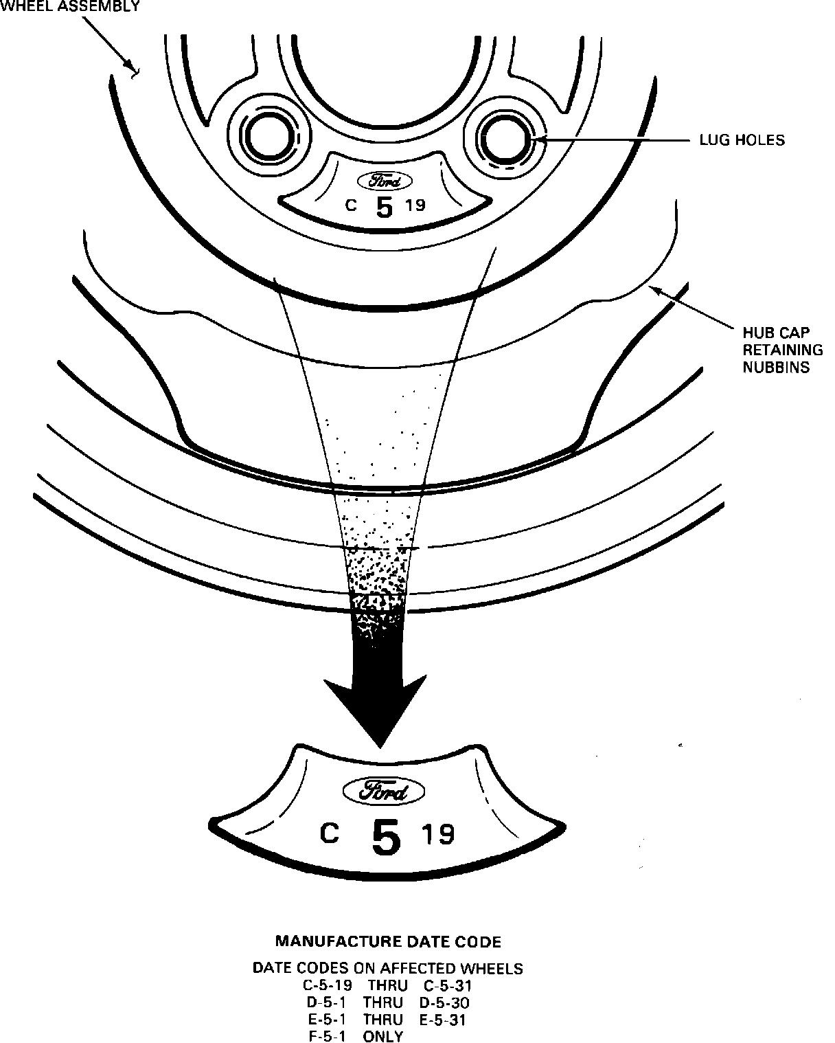2. Missing hubcap - check the spider manufacture date code stamped on wheel (see Figure 10). Replace the wheel and the missing hubcap if the stamped code is: