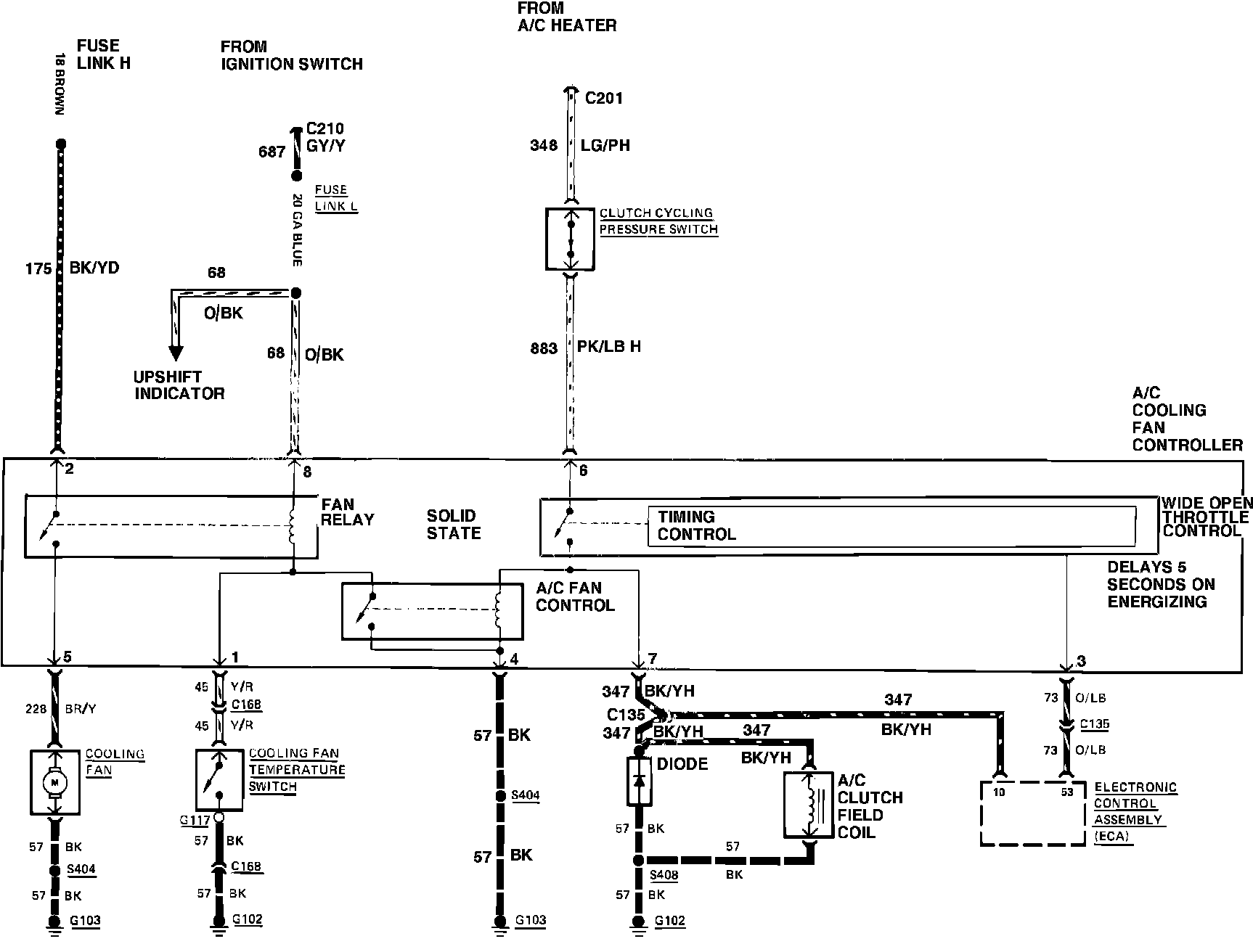 Fig. 15 Cooling Fan Wiring Circuit (Less Turbo). 1985 4 Cylinder: