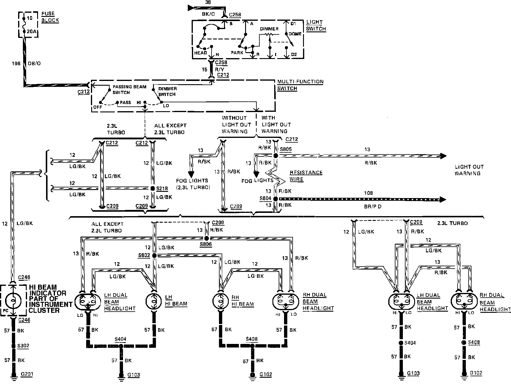 Fig. 37 Headlamp Wiring Circuit. 1985: