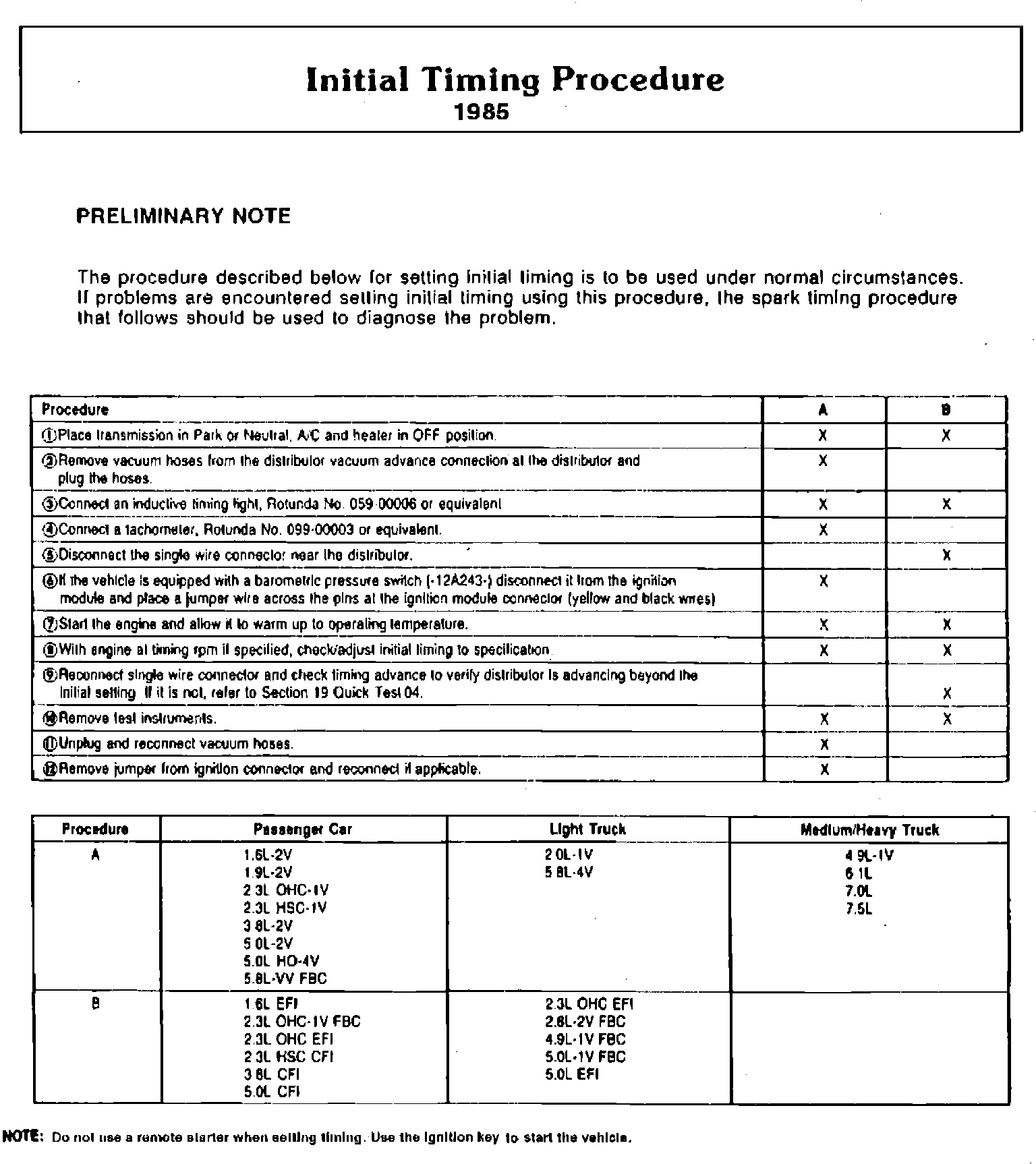 Initial Timing Procedure: