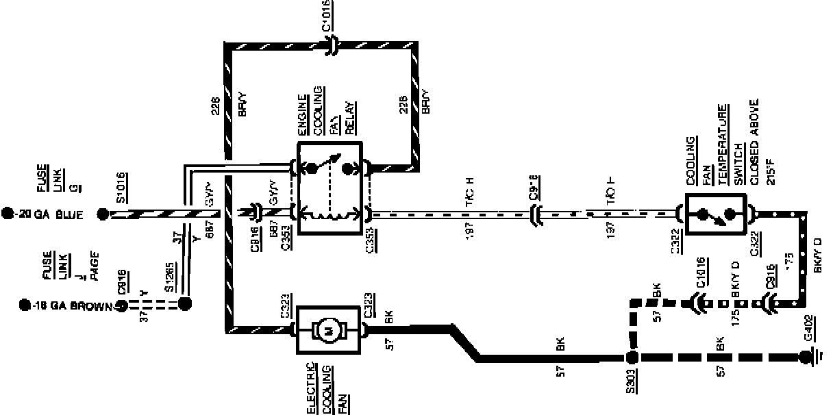 Fig. 16 Cooling Fan Wiring Circuit (Less A/C). 1985 W/Gasoline Engine: