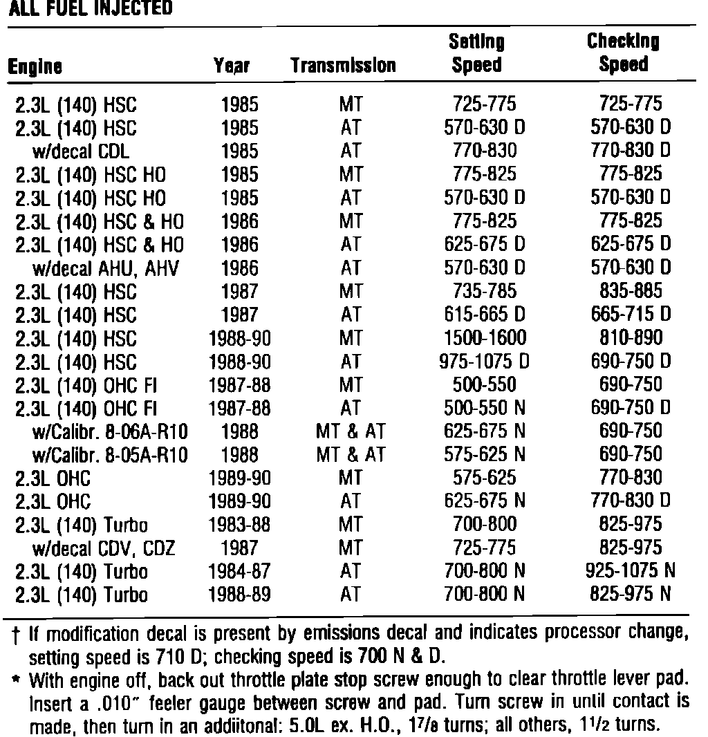 Fuel injected Model, Idle Speed Specifications: