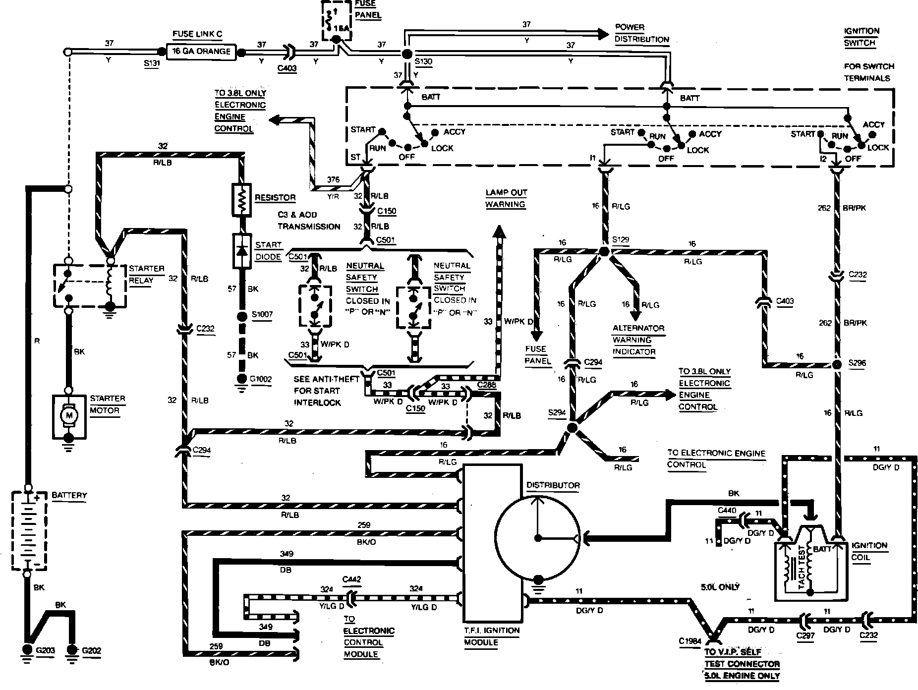 Fig. 38 Ignition System Wiring Circuit. 1985 3.8 Litre & 5.0 Litre Engines With EEC-IV: